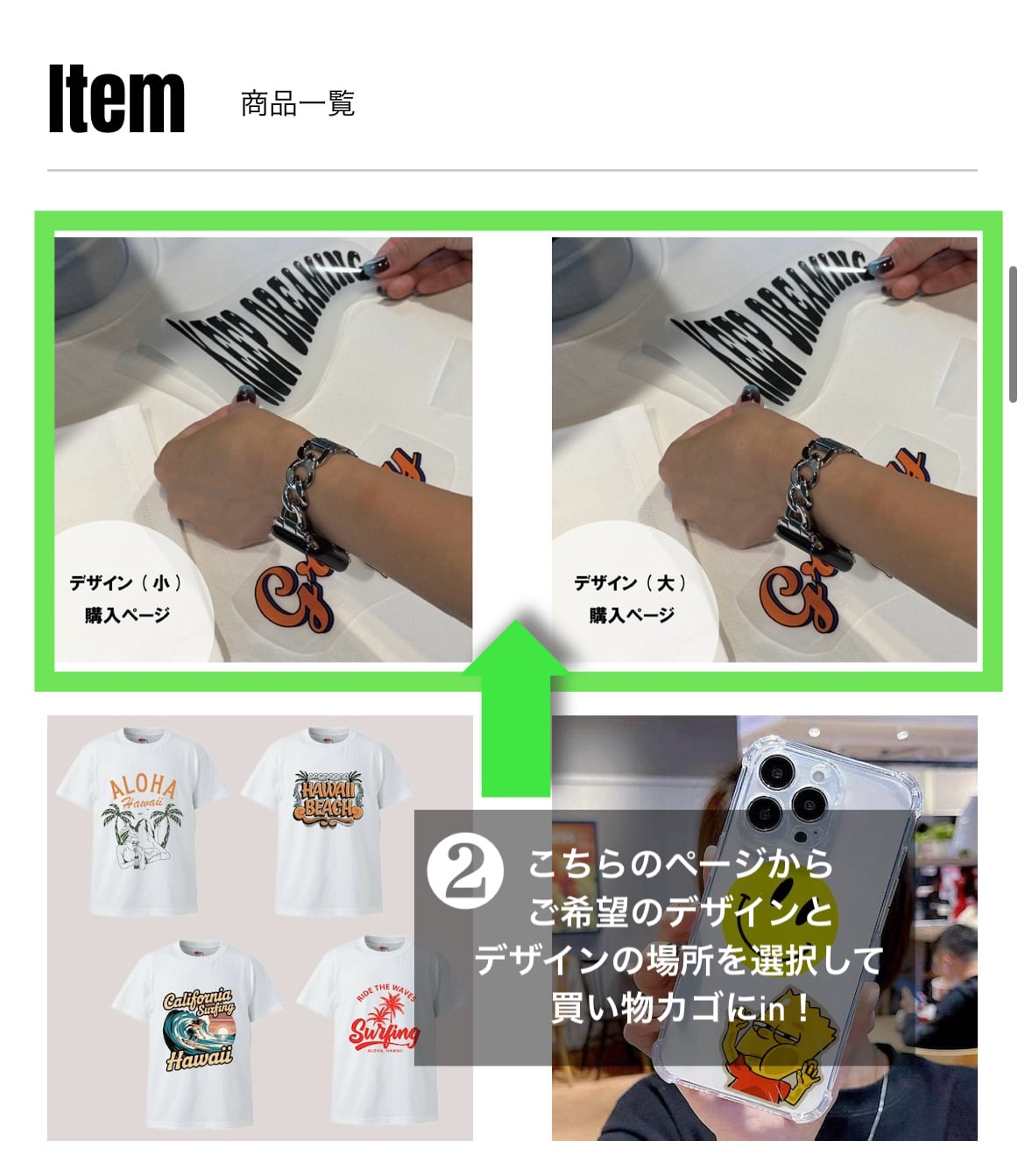 【デザインの種類】【デザインの場所】を自由に選んで